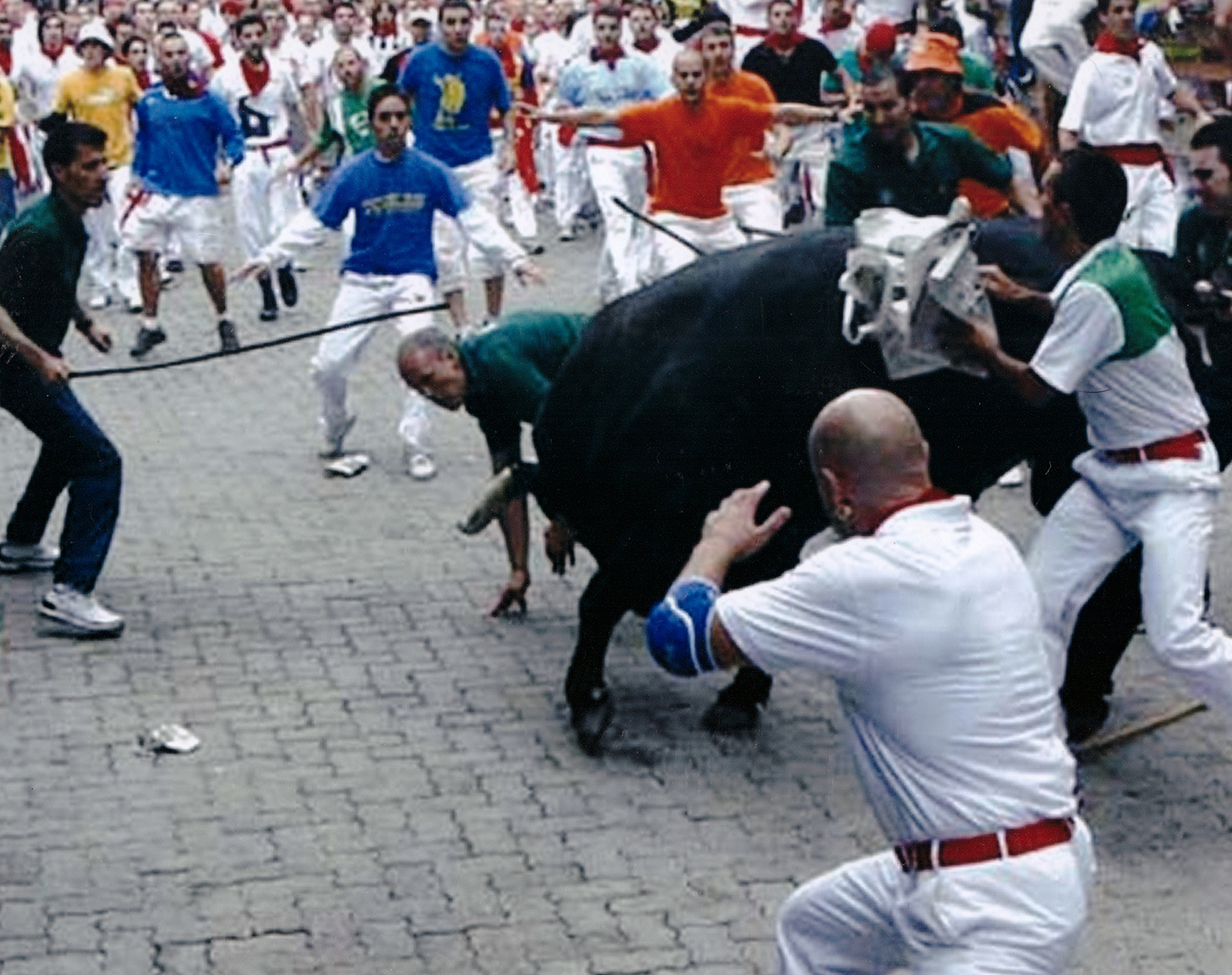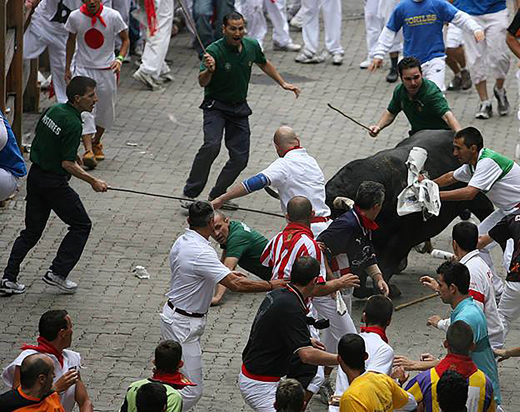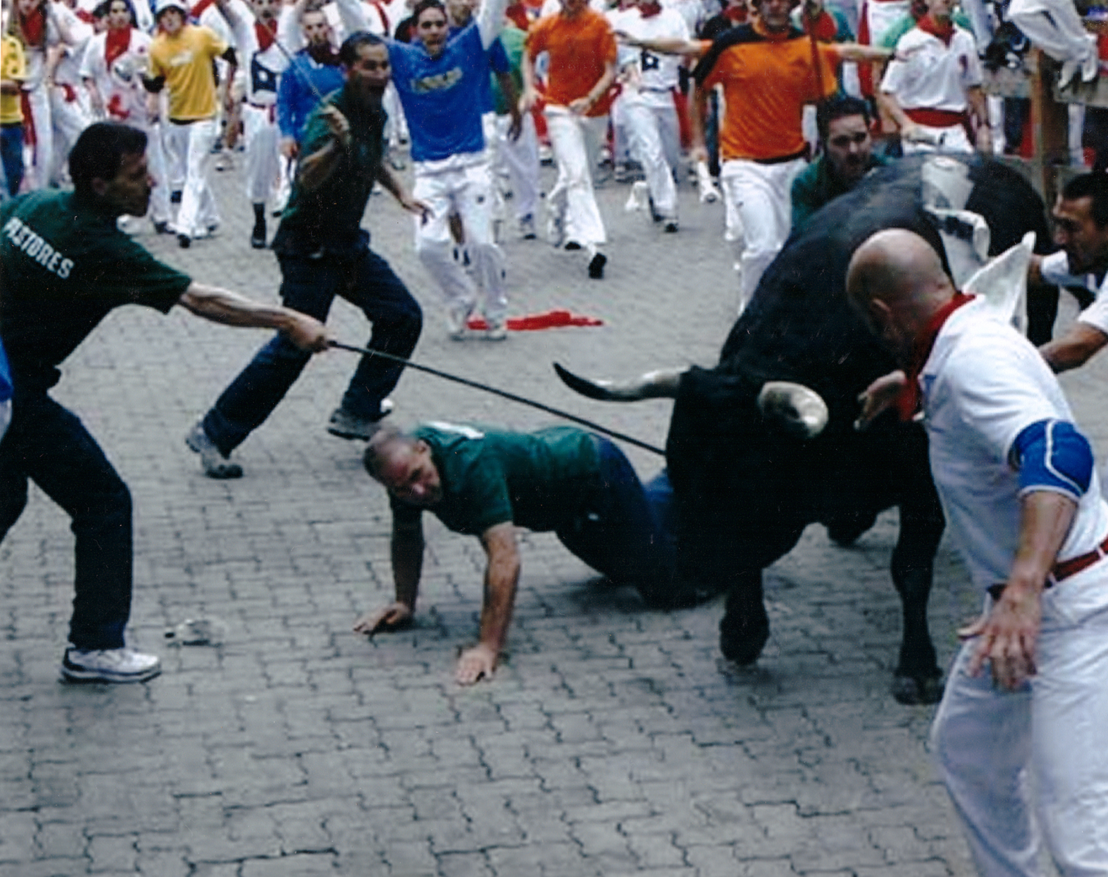 El encierro de los Miuras del 8 de julio de 2007 fue complicado. Mi amigo y pastor Fran Itarte cayó y quedo a merced del toro. Esta vez me tocó a mí sacar al toro. Siempre son ellos, los pastores, los que están ahí dando la cara junto a algunos buenos corredores.