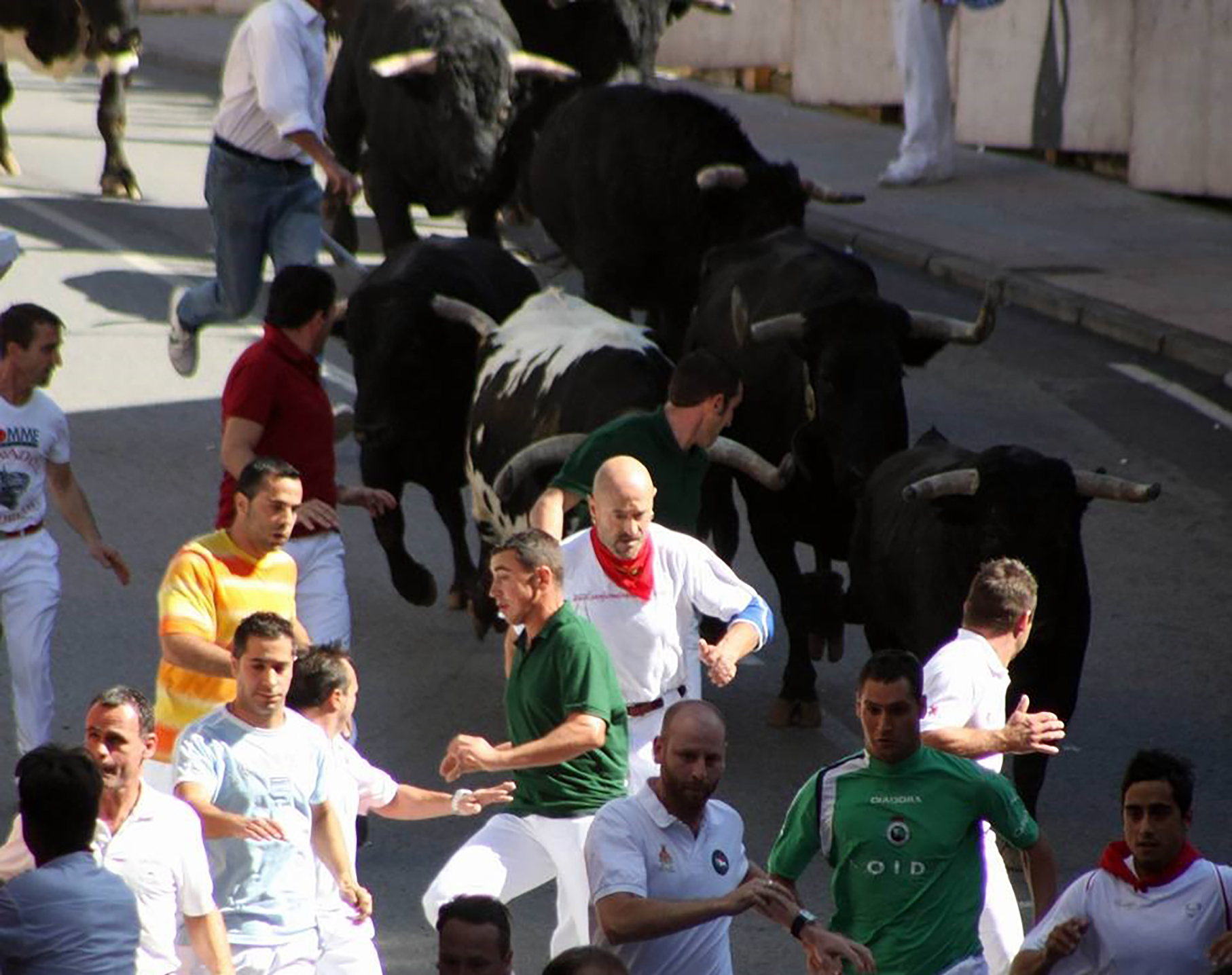 Un día, en la Estafeta, desde Telefónica, mirando hacía el inicio de la calle Estafeta sentenció: “Esto es la catedral del encierro”. Y otro día confesó, en el postre de una comida, en voz más baja, algo mucho más profundo: “cuando entro con un toro al ruedo, me siento un peldaño por encima de todos los mortales”.